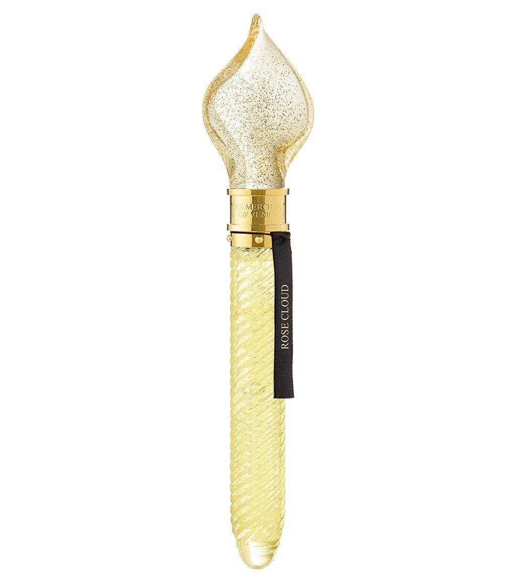 Sofisticada y preciosa, la fragancia Rose Cloud ofrece la esencia de la rosa fusionada con exquisitas especias y maderas cremosas. Todos estos ingredientes están contenidos en una botella envolvente. La delicadeza del vaso y la elegante forma del frasco recuerdan el carácter estético de la fragancia. La botella se ve reforzada por una llama brillante y una cinta de seda que lleva el nombre de la fragancia.